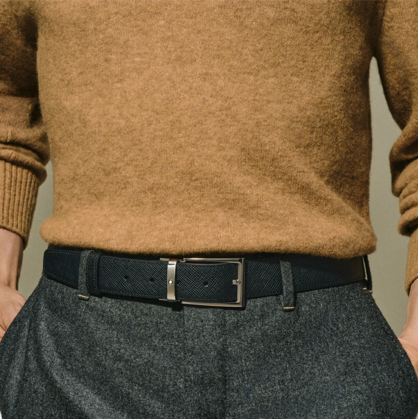 Двухсторонний мужской ремень Montblanc: кожа черного и коричневого цвета 35 мм от магазина премиальных ручек Premium Pens в Ессентуках.